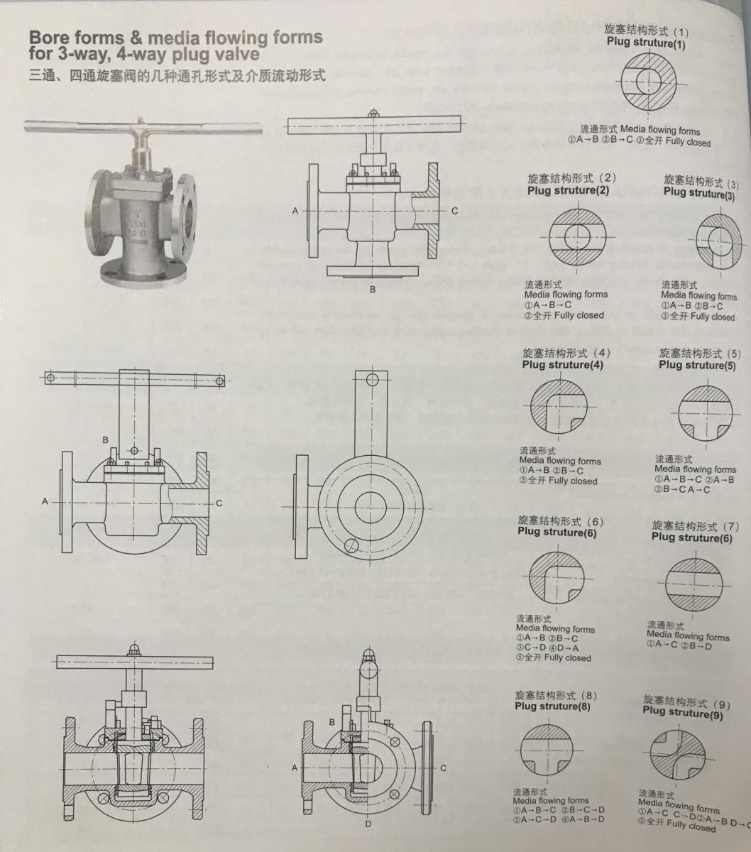 2. According to different conditions, the 3-way, 4-way plug valve can be designed into diverse media flowing forms (such as L type and T type) or all kinds of materials (e.g. iron, cast steel, stainless steel) or unlike sealing forms (e.g. metal to metal, sleeve type, lubricated).